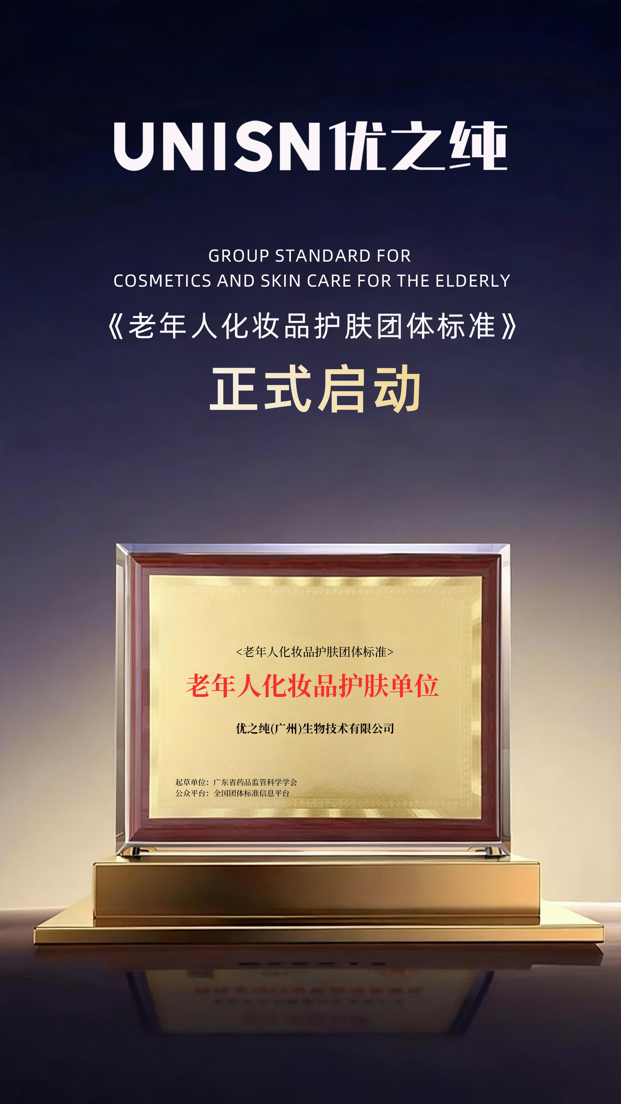 2025年12月29日,中国首个《老年人化妆品通用技术规范》由广东省药品监管科学学会正式启动!优之纯作为牵头单位,将深度参与编撰,标志着优之纯的老年化妆品产业将进入规范化、高质量发展新阶段。