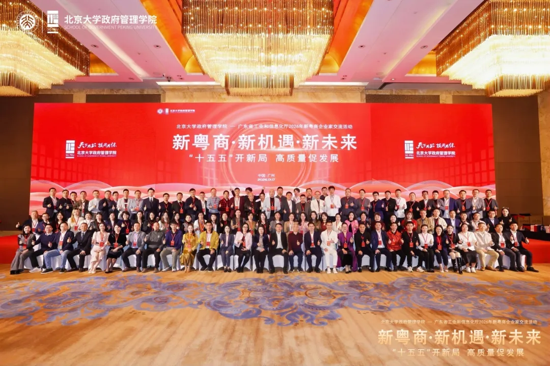 2026年1月17日,北京大学政府管理学院与广东省工业和信息化厅在广州圣丰索菲特大酒店联合举办了一场聚焦“十五五”规划的高端盛会的“2026年新粤商企业家交流活动”。来自全省的150余位新粤商企业家齐聚一堂,共商发展大计。