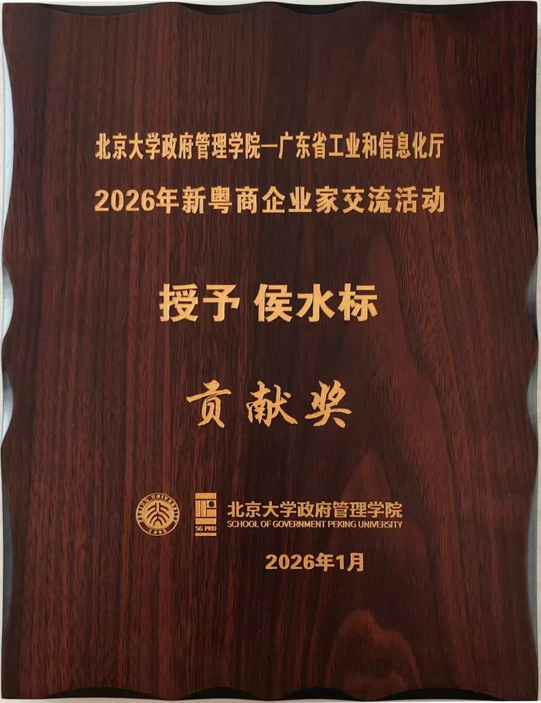 由于优之纯CEO侯水标的突出贡献,获得由北京大学政府管理学院颁发的“贡献奖”。